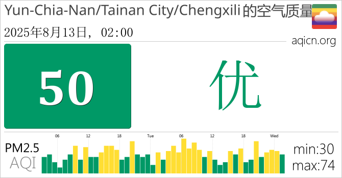 台湾Yun-Chia-Nan/Tainan City/Chengxili的空气污染指数是优