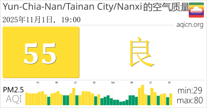 台湾Yun-Chia-Nan/Tainan City/Nanxi的空气污染指数是良