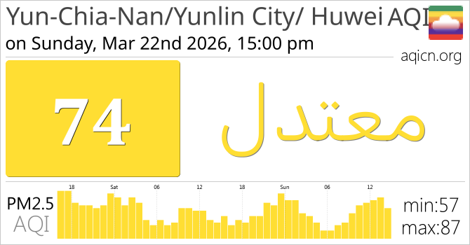 جودة الهواء في Yun-Chia-Nan/Yunlin City/ Huwei, Taiwan هي معتدل