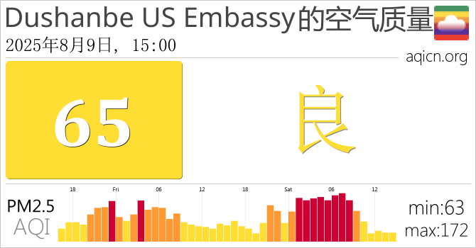 Dushanbe US Embassy, Tajikistan的空气污染指数是良