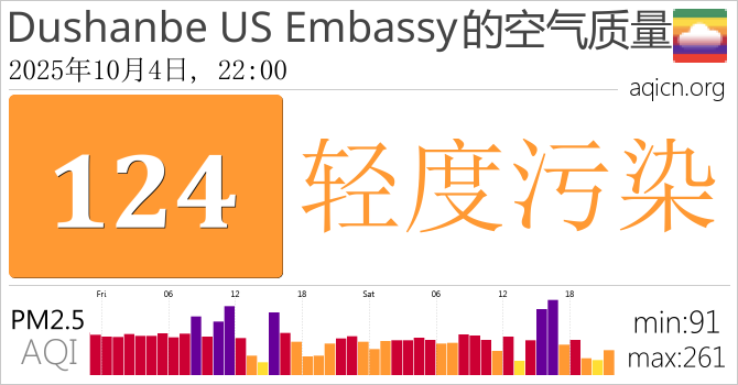 Dushanbe US Embassy, Tajikistan的空气污染指数是轻度污染