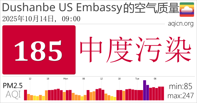 Dushanbe US Embassy, Tajikistan的空气污染指数是中度污染