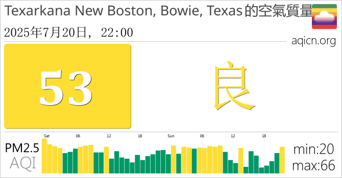 Texarkana New Boston, Bowie, Texas, 德州的空氣污染指數是良