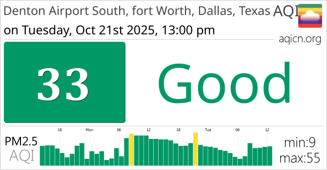 Denton Airport South, fort Worth, Dallas, Texas, Texas Air Quality is Good