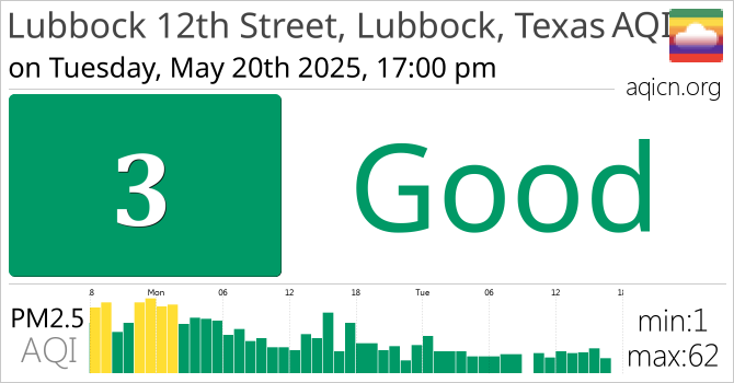 Lubbock 12th Street, Lubbock, Texas, Texas Air Quality is Good