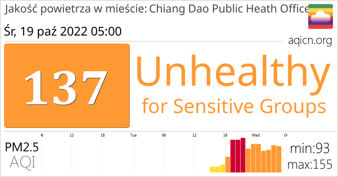Jakość powietrza w mieście Chiang Dao Public Heath Office, Tajlandia jest Unhealthy for Sensitive Groups