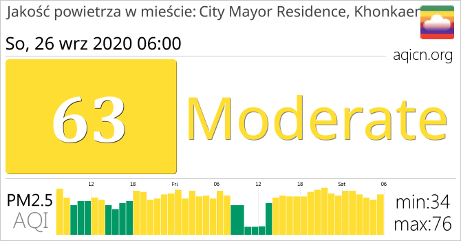 Jakość powietrza w mieście City Mayor Residence, Khonkaen, Tajlandia jest Moderate