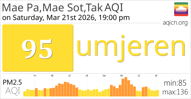 Kvaliteta zraka u gradu Mae Pa,Mae Sot,Tak, Thailand je umjeren