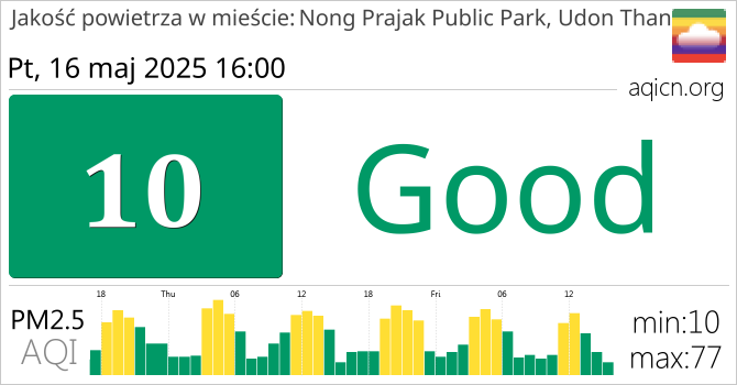 Jakość powietrza w mieście Nong Prajak Public Park, Udon Thani, Tajlandia jest Good