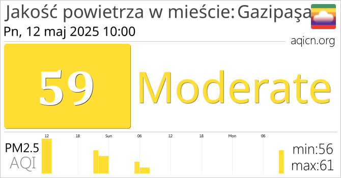 Jakość powietrza w mieście Gazipaşa, Turcja jest Moderate