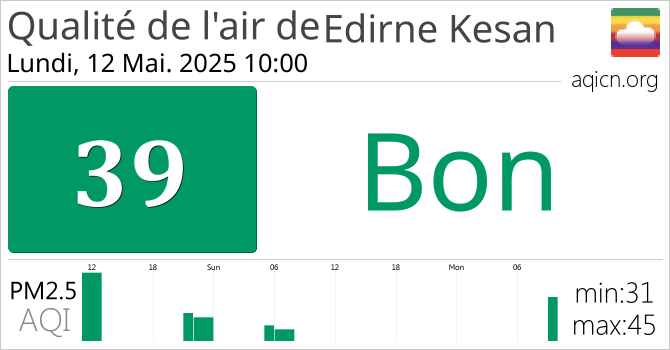La qualité de l'air à Edirne Kesan, Turquie est Bon