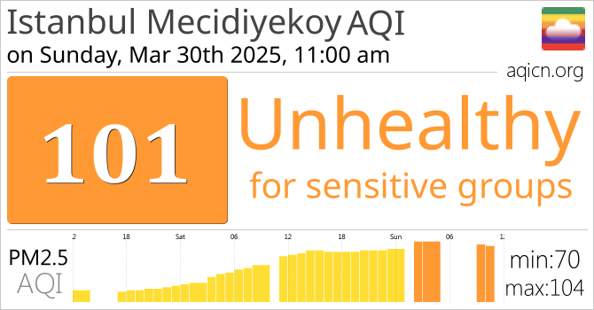 ຄຸນນະພາບອາກາດຂອງ Istanbul Mecidiyekoy, Turkey ແມ່ນ Unhealthy