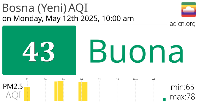 La qualità dell'aria a Bosna (Yeni), Turkey è Buona