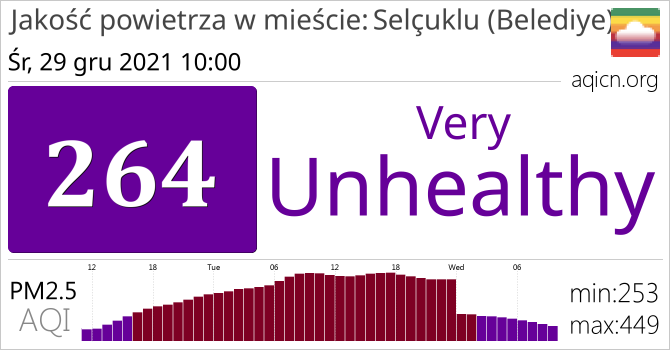 Jakość powietrza w mieście Selçuklu (Belediye), Turcja jest Very Unhealthy
