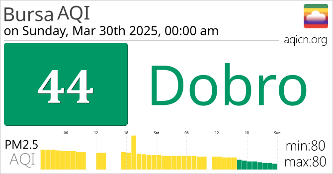 Kvaliteta zraka u gradu Bursa, Turkey je Dobro