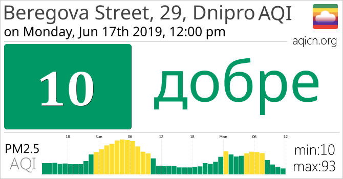 Качеството на въздуха в Beregova Street, 29, Dnipro, Ukraine е добре