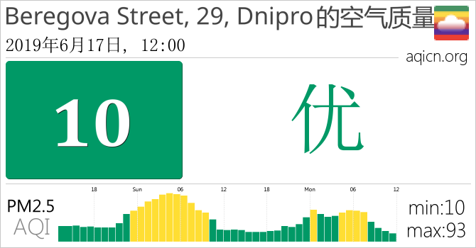 Beregova Street, 29, Dnipro, Ukraine的空气污染指数是优