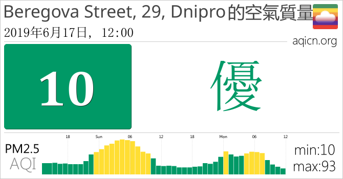 Beregova Street, 29, Dnipro, Ukraine的空氣污染指數是優