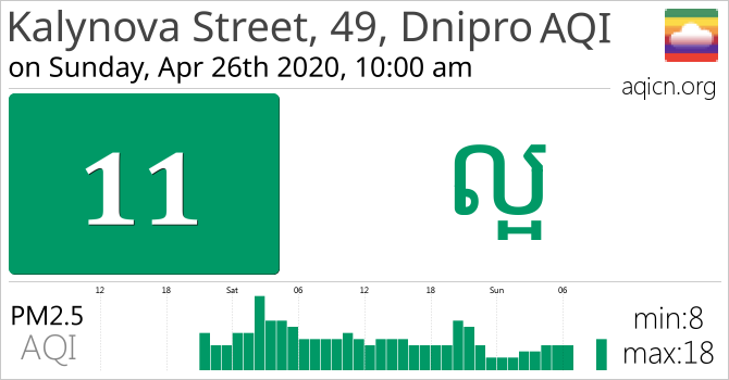 គុណភាពខ្យល់របស់ Kalynova Street, 49, Dnipro, Ukraine គឺ ល្អ