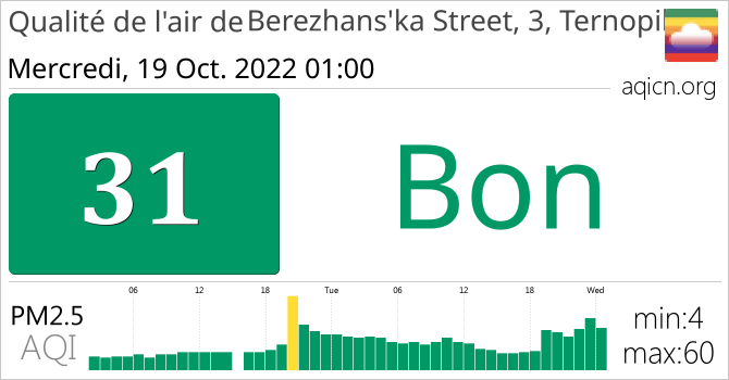 La qualité de l'air à Berezhans'ka Street, 3, Ternopil, Ukraine est Bon