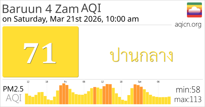 คุณภาพอากาศของ Baruun 4 Zam, Ulaanbaatar อยู่ที่ ปานกลาง