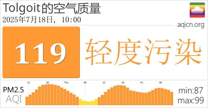 Tolgoit, Ulaanbaatar的空气污染指数是轻度污染