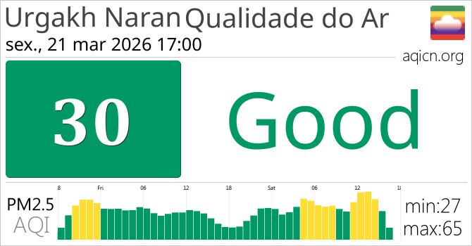 A qualidade do ar em Urgakh Naran, Ulaanbaatar é Good