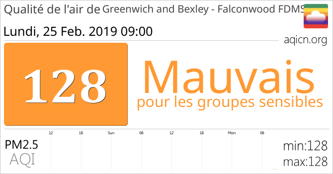 La qualité de l'air à Greenwich and Bexley - Falconwood FDMS, Royaume-Uni est Mauvais pour les groupes sensibles
