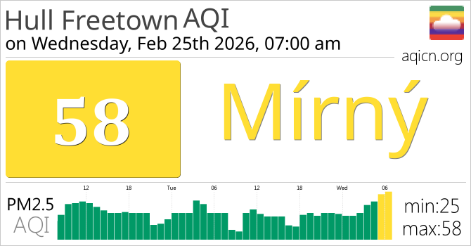 Kvalita ovzduší ve městě Hull Freetown, United Kingdom je Mírný