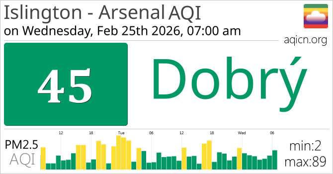Kvalita ovzduší ve městě Islington - Arsenal, United Kingdom je Dobrý