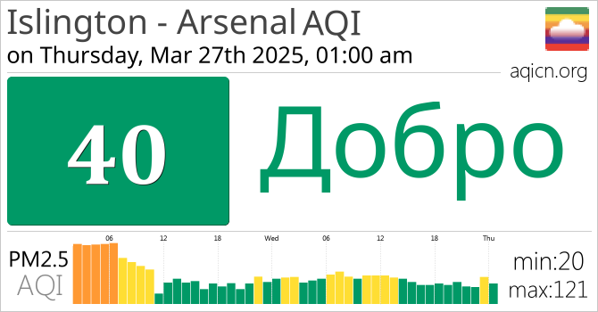 Квалитет ваздуха за Islington - Arsenal, United Kingdom је {к_левел}
