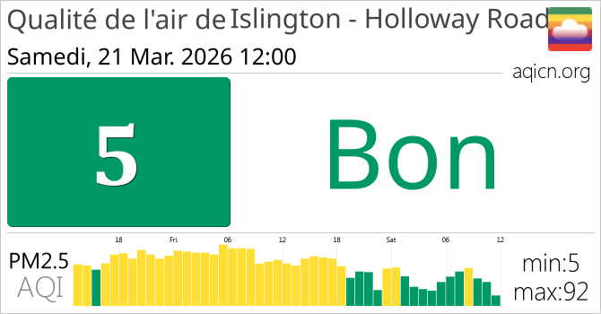 La qualité de l'air à Islington - Holloway Road, Royaume-Uni est Bon