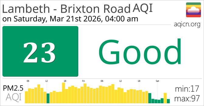 Lambeth - Brixton Road, United Kingdom Air Quality is Good