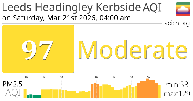 Leeds Headingley Kerbside, United Kingdom Air Quality is Moderate