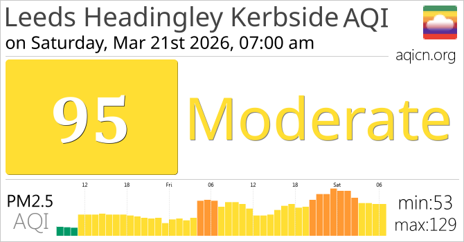 Leeds Headingley Kerbside, United Kingdom Air Quality is Moderate
