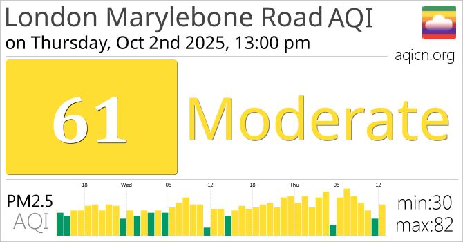 London Marylebone Road, United Kingdom Air Quality is Moderate
