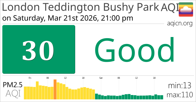 London Teddington Bushy Park, United Kingdom Air Quality is Good