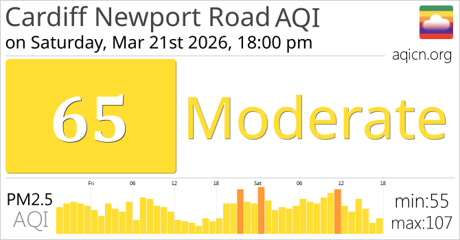 Cardiff Newport Road, United Kingdom Air Quality is Moderate