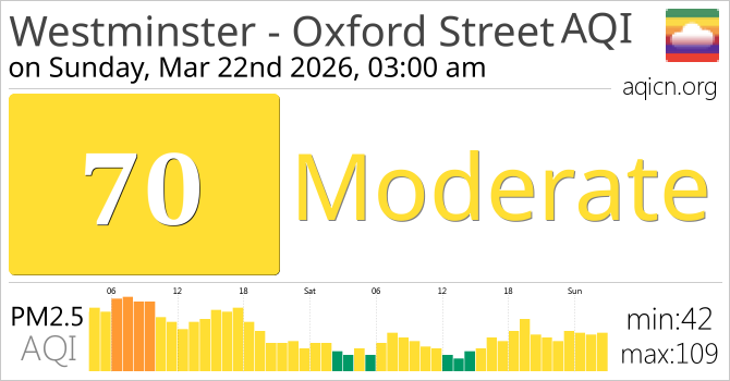 Westminster - Oxford Street, United Kingdom Air Quality is Moderate