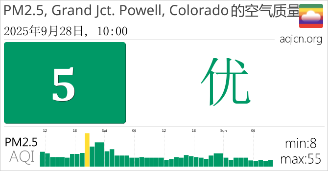 PM2.5, Grand Jct. Powell, Colorado, 美国的空气污染指数是优