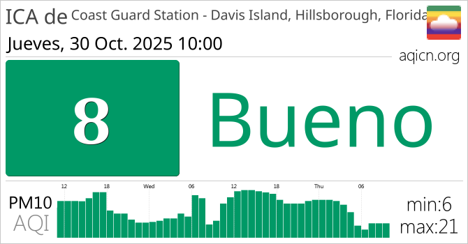 La calidad del aire de Coast Guard Station - Davis Island, Hillsborough, Florida, Estados Unidos es Bueno