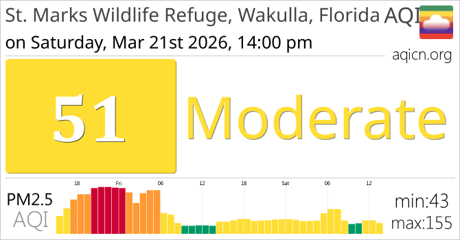 St. Marks Wildlife Refuge, Wakulla, Florida, USA Air Quality is Moderate