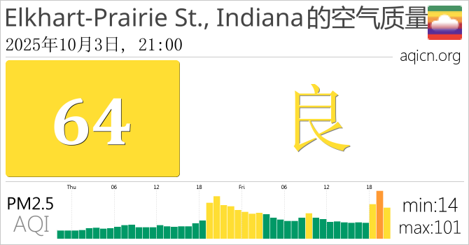 Elkhart-Prairie St., Indiana, 美国的空气污染指数是良