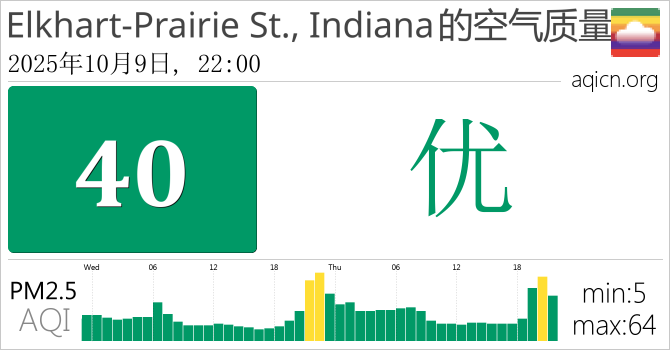 Elkhart-Prairie St., Indiana, 美国的空气污染指数是优
