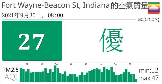 Fort Wayne-Beacon St, Indiana, 美國的空氣污染指數是優