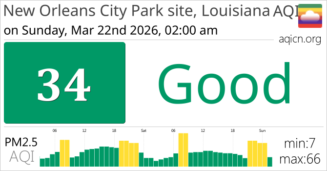 New Orleans City Park site, Louisiana, USA Air Quality is Good