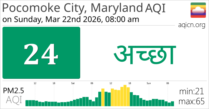 Pocomoke City, Maryland, USA की वायु गुणवत्ता अच्छा है