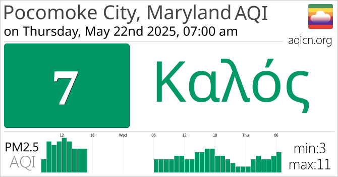 Η ποιότητα αέρα του Pocomoke City, Maryland, USA είναι Καλός