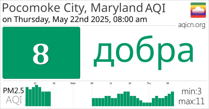 Якасць паветра ў Pocomoke City, Maryland, USA складае добра