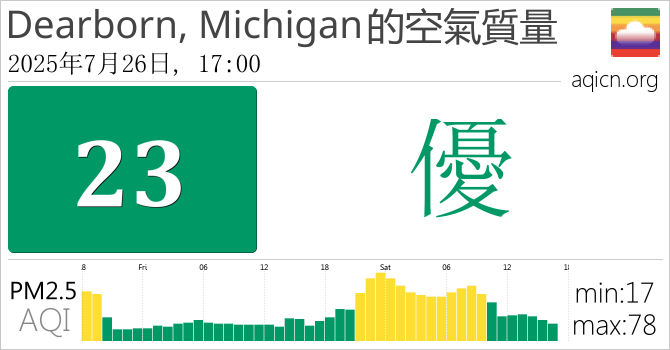 Dearborn, Michigan, 美國的空氣污染指數是優
